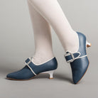 Developed with input from Colonial Williamsburg, Dunmore is accurate for c. 1770 - 1790s, with a 2 inch / 5.08 cm Italian heel crafted after an extant shoe, a tapered toe and soft toe box, and latchet closure.