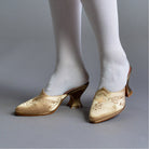 Special edition Gilded Charlotte 18th century mules feature limited edition gold-on-gold embroidery, for a truly royal look! These shoes are only available to pre-order for two weeks, then they will be gone forever- so treat yourself to a regal experience while you can!