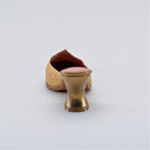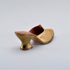 - Well-balanced, custom 2.5 in / 6.3 cm gold leather-covered French heels