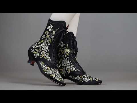 Indulge in a piece of history with Flora Embroidered Boots, an exclusive reproduction of the intricate opera and evening boots popular in the late Victorian period. Expertly crafted with intricate botanical detailing, these stunning satin boots will take you back to an era of sophistication and finesse. Wear them with bustle and Belle Epoque attire from the 1870s to c. 1900, or with modern dress as a statement piece.