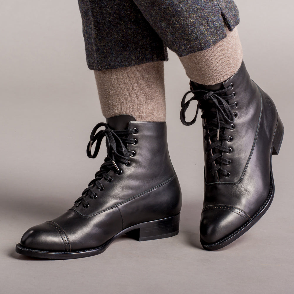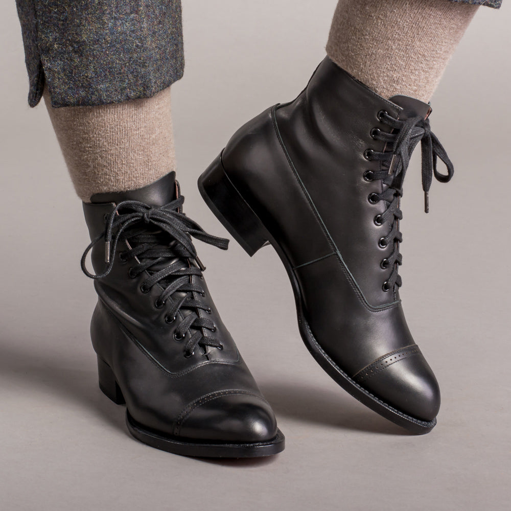 Rainey Vintage Lace-Up Boots (Black)