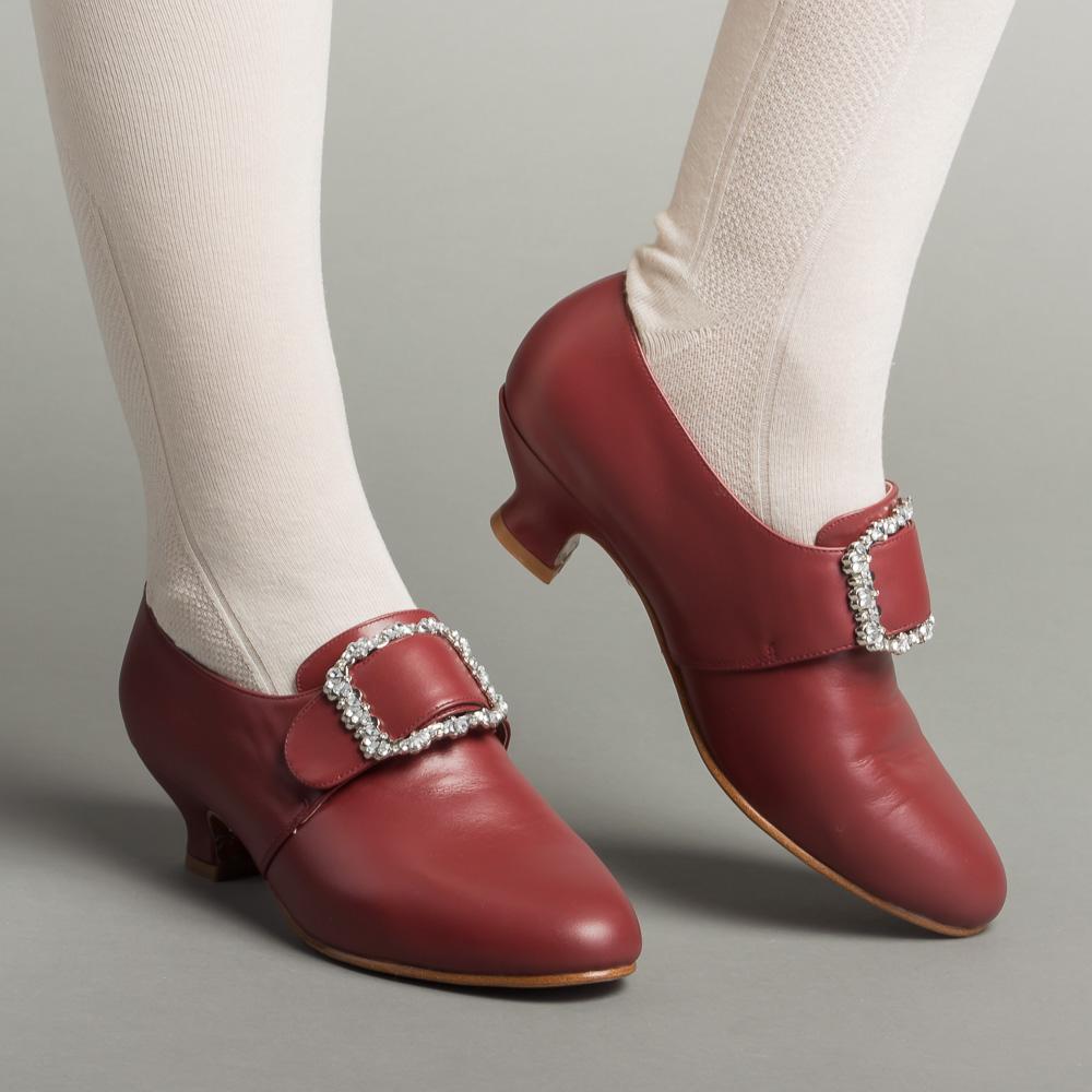 We don't believe you should have to sacrifice style when portraying middle-class townswomen or camp followers! Our rich, oxblood red Kensingtons will complement your eye-catching ensemble perfectly.