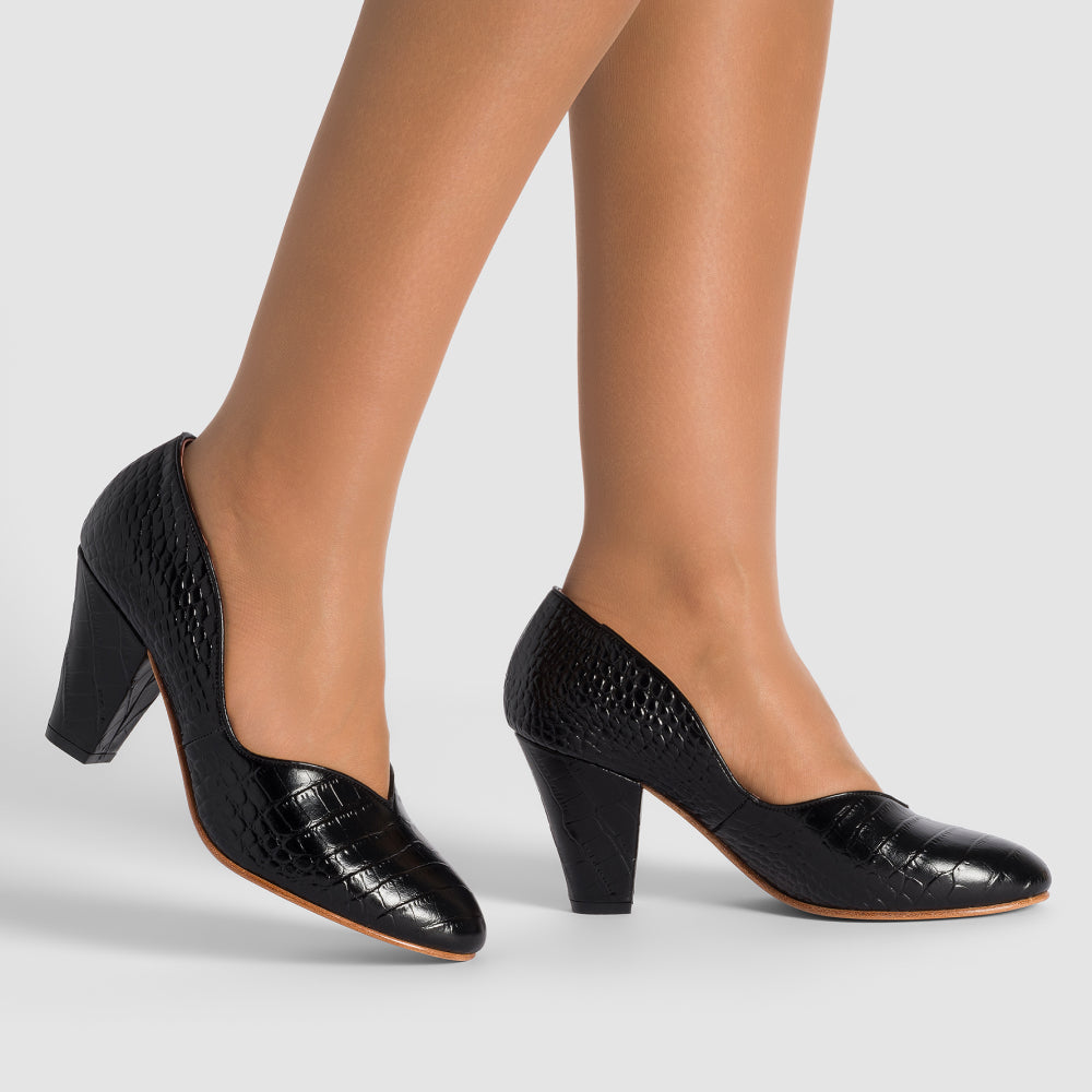 Marilyn Vintage Pumps (Mock Croc Black)