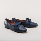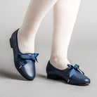 These slip-on shoes are accurate for c. 1790 - 1820. They feature an all leather upper with bound edges and a grosgrain ribbon tie on the vamp. The lining and soling are both leather, with the edges of the sole and stacked leather heel blacked. These beautiful shoes have a rounded toe and can be worn with daywear for women, perfect for Jane Austen, Napoleonic Era, War of 1812, and other Regency events.