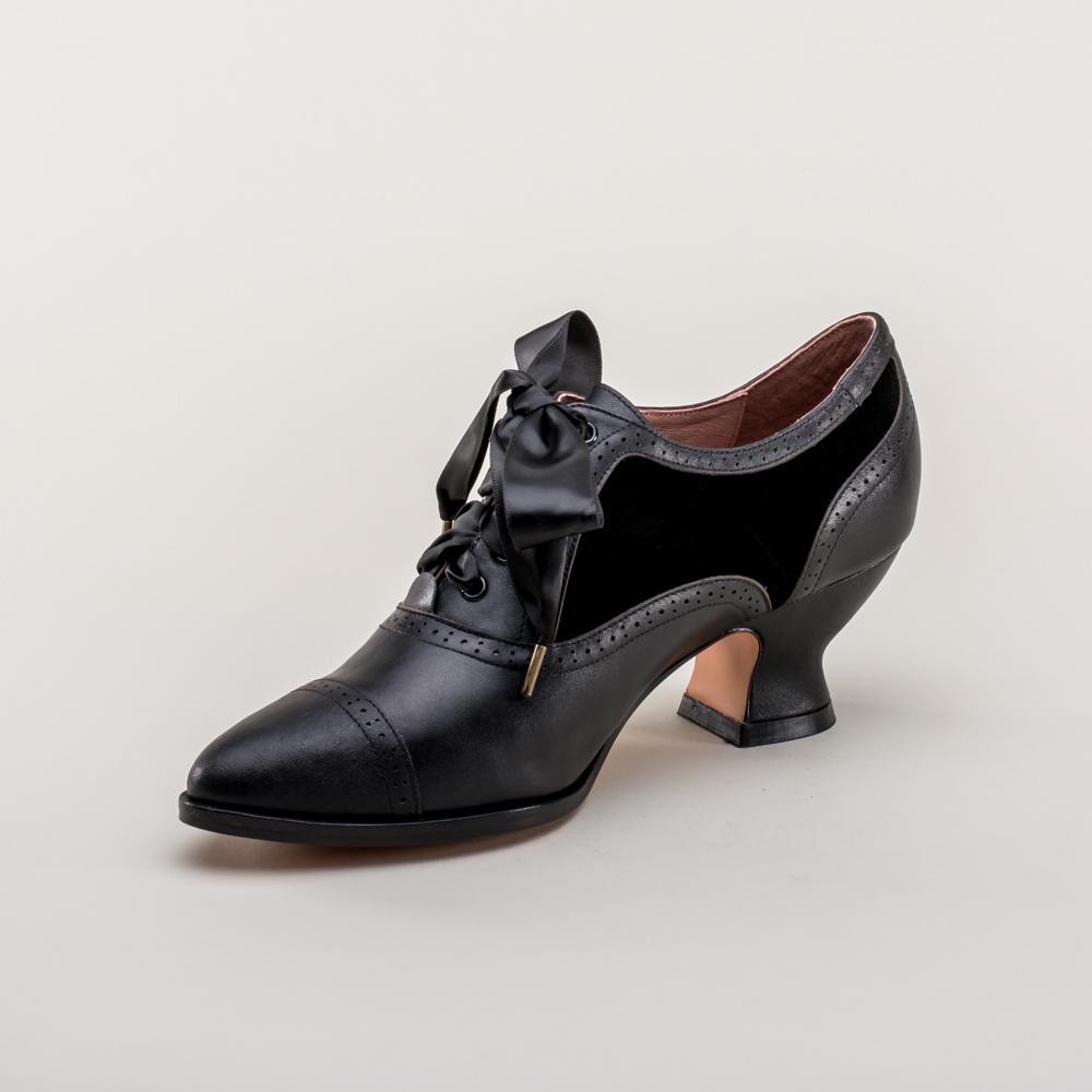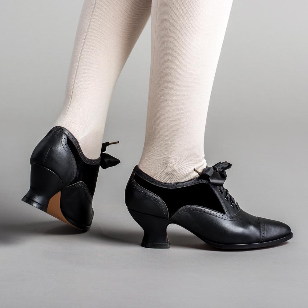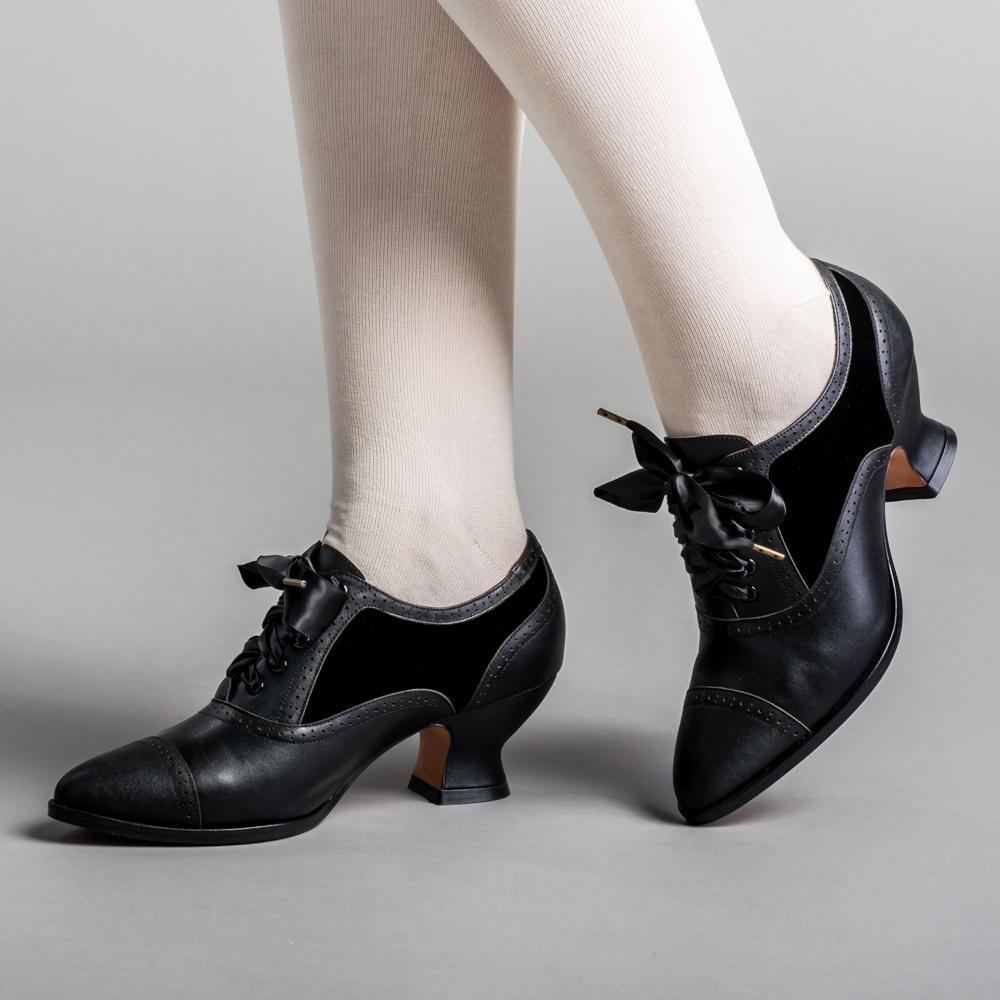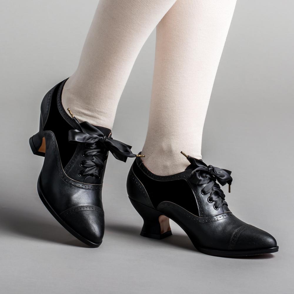 It's hard to go wrong with leather and velveteen, and the Lucille oxfords pair the two perfectly. Made on our best-selling and most beloved Edwardian oxford last and heel, the Lucille Edwardian Oxfords are perfect for the turn of the 20th century all the way through the mid-1920s, but try them with modern attire and aesthetics as well, such as Cottagecore, Lolita, and Gothic outfits.