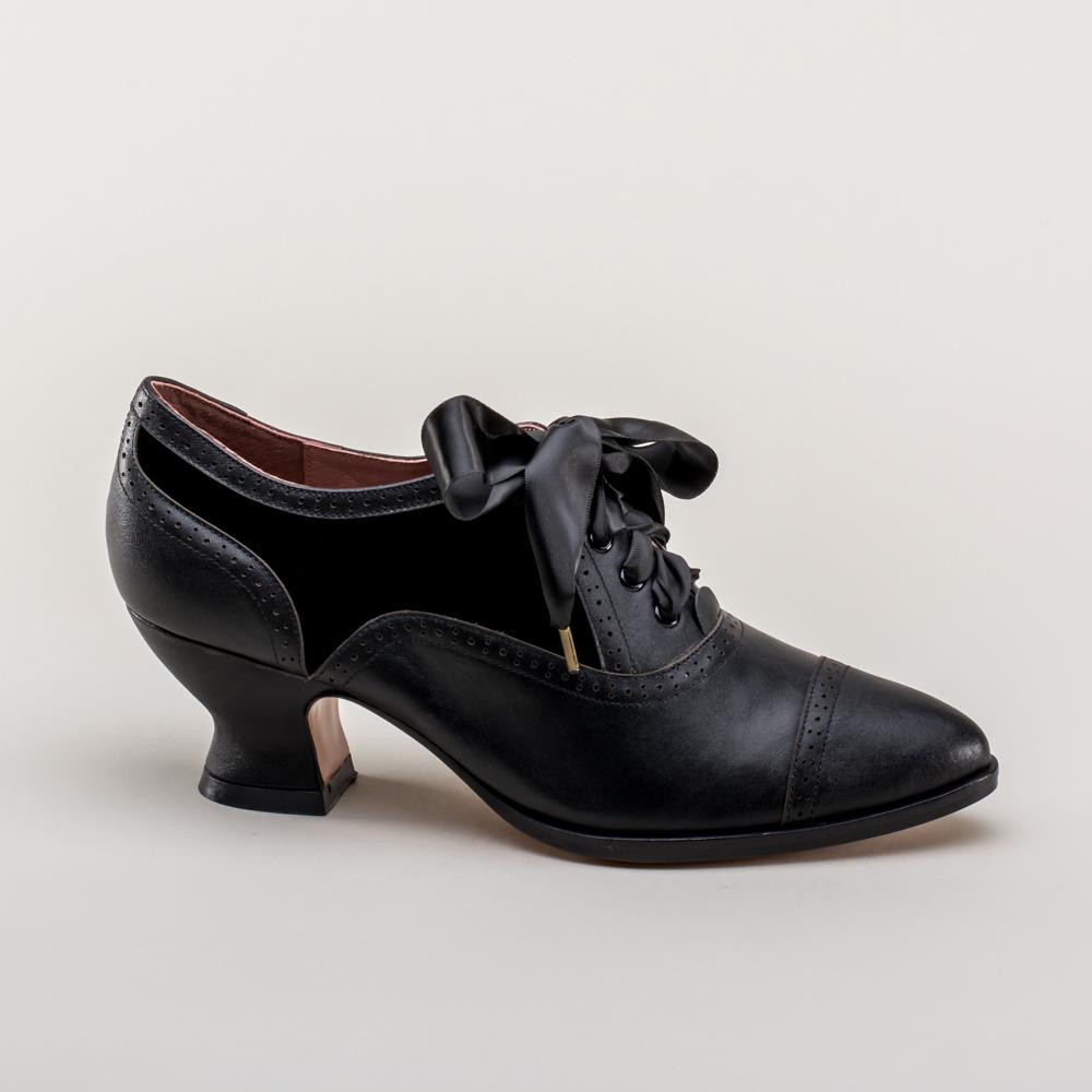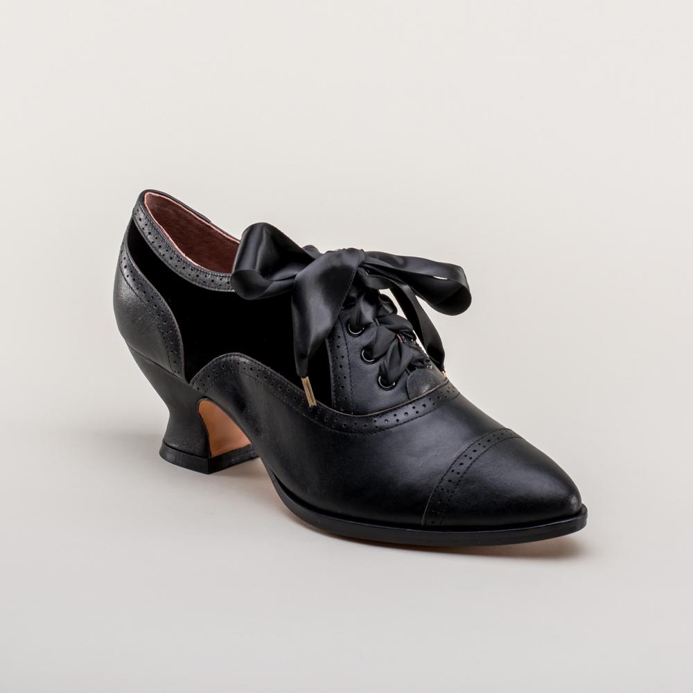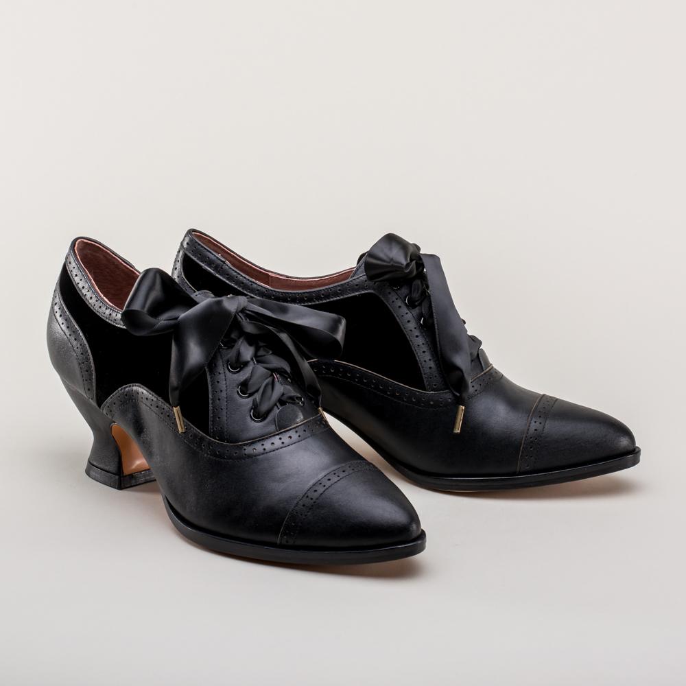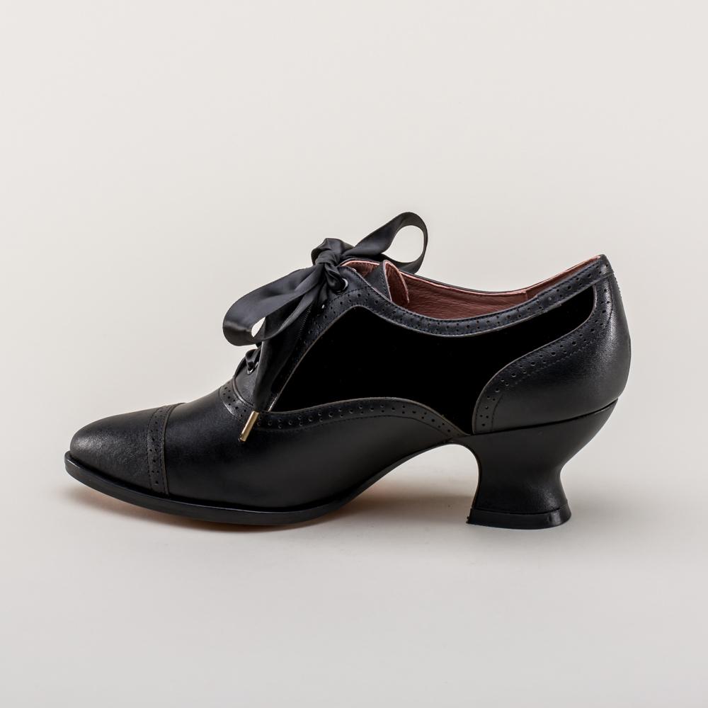 It's hard to go wrong with leather and velveteen, and the Lucille oxfords pair the two perfectly. Made on our best-selling and most beloved Edwardian oxford last and heel, the Lucille Edwardian Oxfords are perfect for the turn of the 20th century all the way through the mid-1920s, but try them with modern attire and aesthetics as well, such as Cottagecore, Lolita, and Gothic outfits.