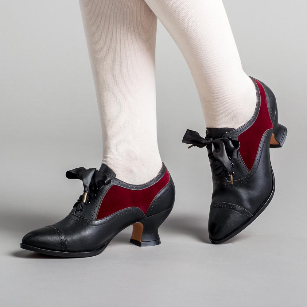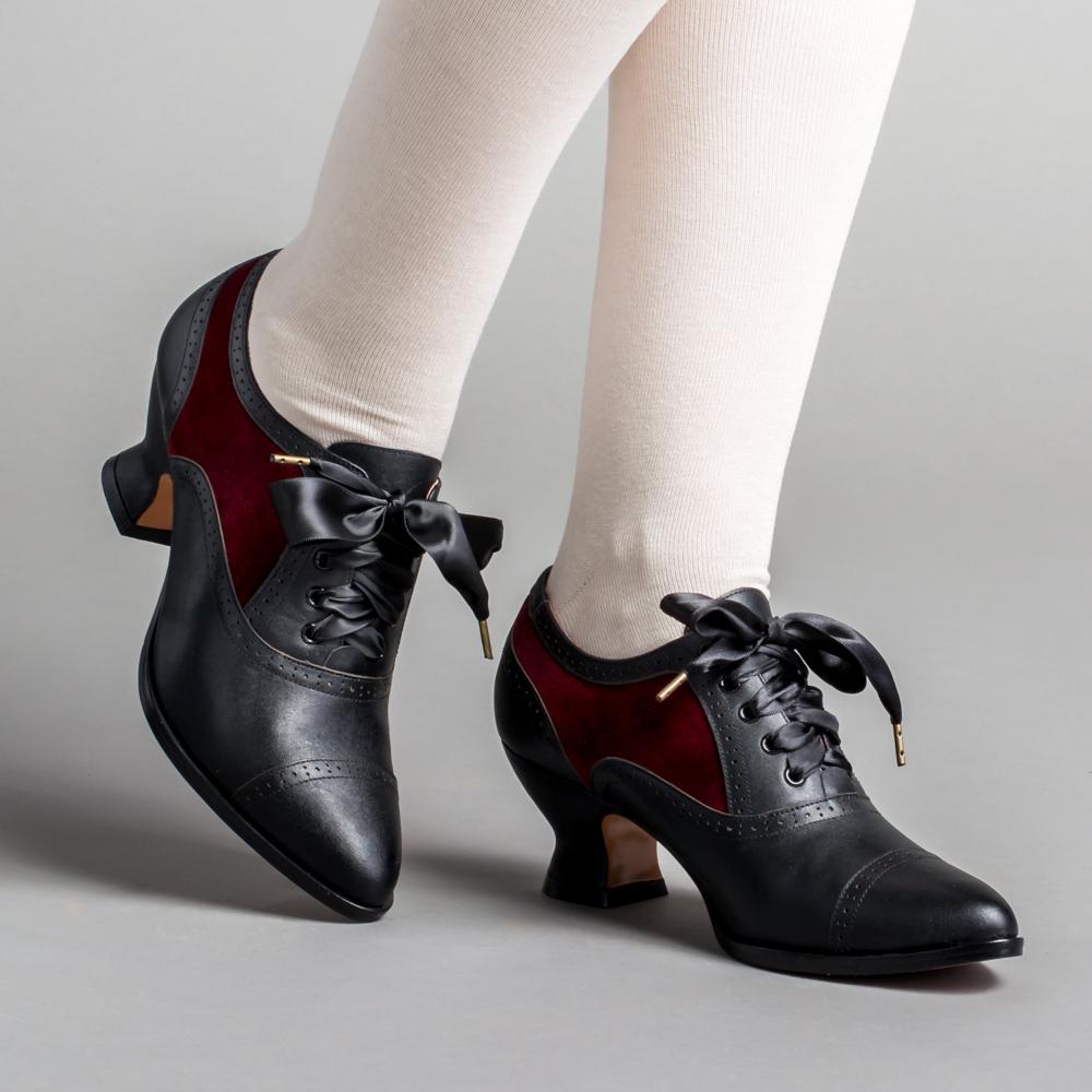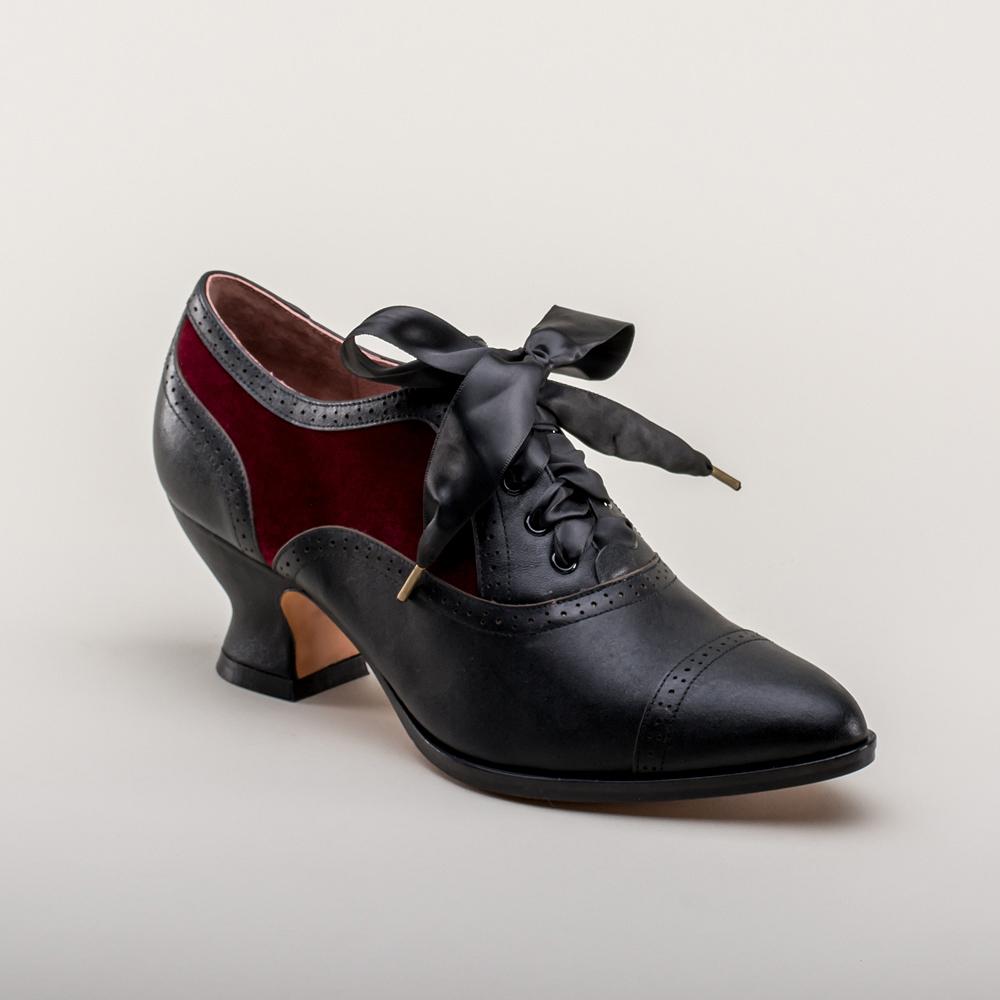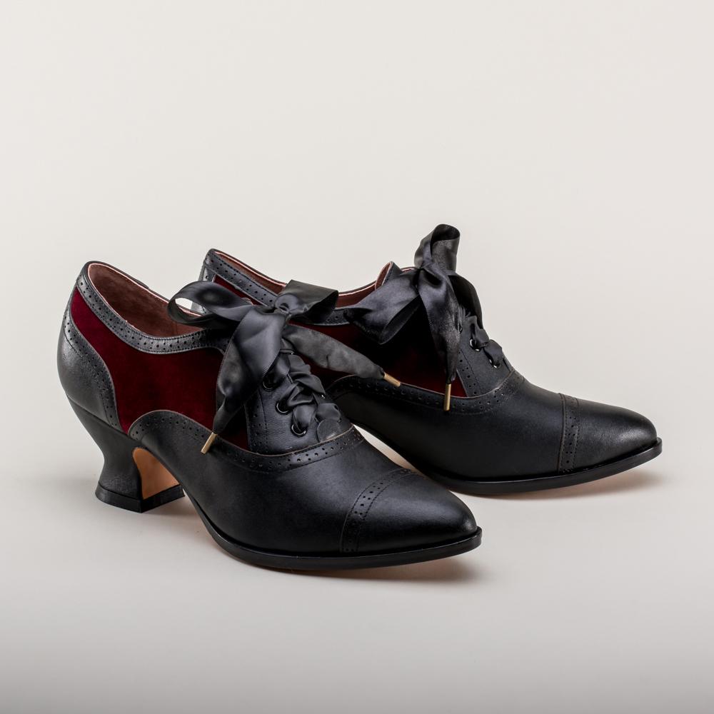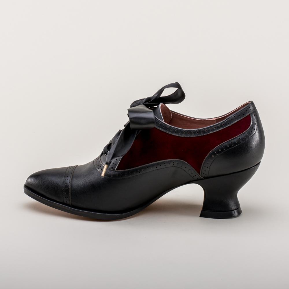 Lucille Edwardian Oxfords (Black/Burgundy)