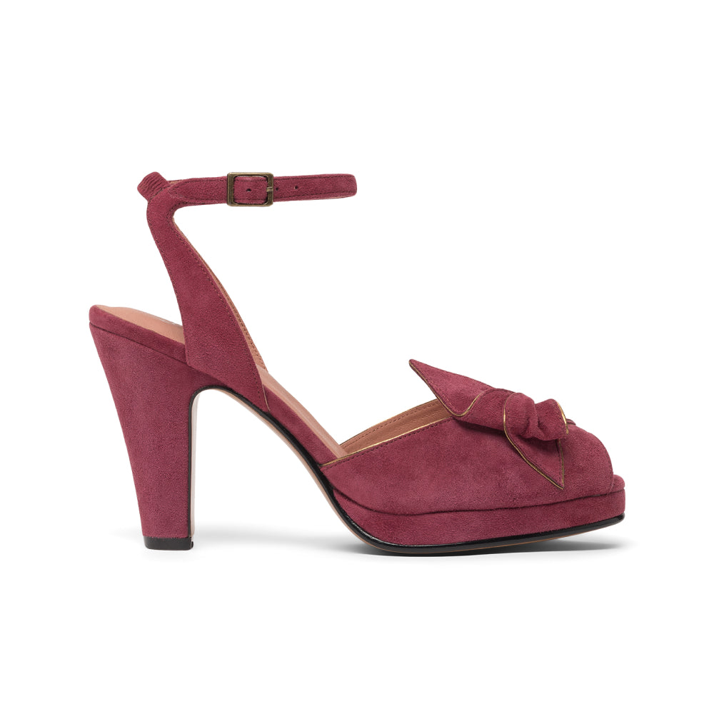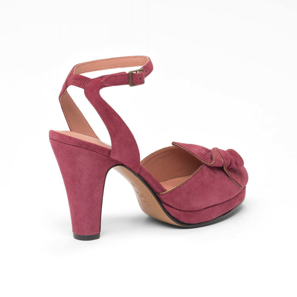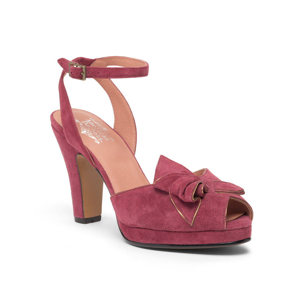 The glamorous platforms of the 1940s come to life with Ava, a veritable vintage knockout. Built on a new period-accurate reproduction last, Ava has a 0.6"/1.5 cm platform under the toe, providing lift and balance to match our custom, perfectly balanced, 4"/10 cm Spanish heels. Ava's uppers are crowned with a detailed, folded leather decorative bow, with smooth leather piping in coordinating colors. Ava's ankle straps are secured with a smart rectangular buckle, just like the originals from the 1940s. Ava pairs with your contemporary wardrobe just as well as your favorite pin-up inspired ensembles.
