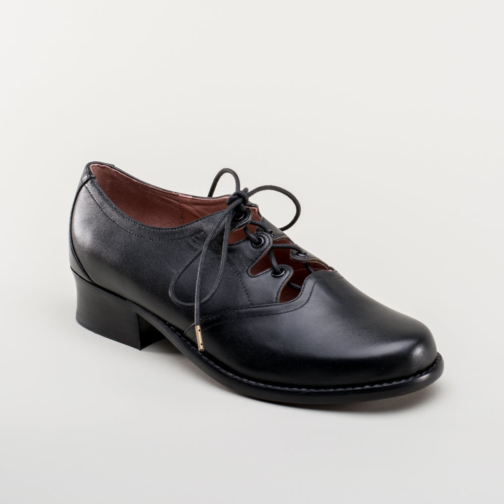 Made in all leather with leather soles, the Ghillies come with two sets of laces for different looks. A sculptural, round toe is paired with our stable 1.25 inch / 3.2 cm heel. These are an all-day every-day shoe offering an elevated and unique look perfect for the 1930s through the 1960s.