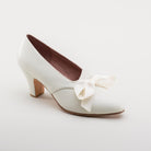 Glamour and practicality pair perfectly with the beautiful Hazel slip-on pumps. Glossy leather, an almond-shaped toe, 2.5 in / 6.35 cm repro heel, and the cutest little ribbon bow tie make these beautiful shoes perfect for the 1920s all the way through to 1950.