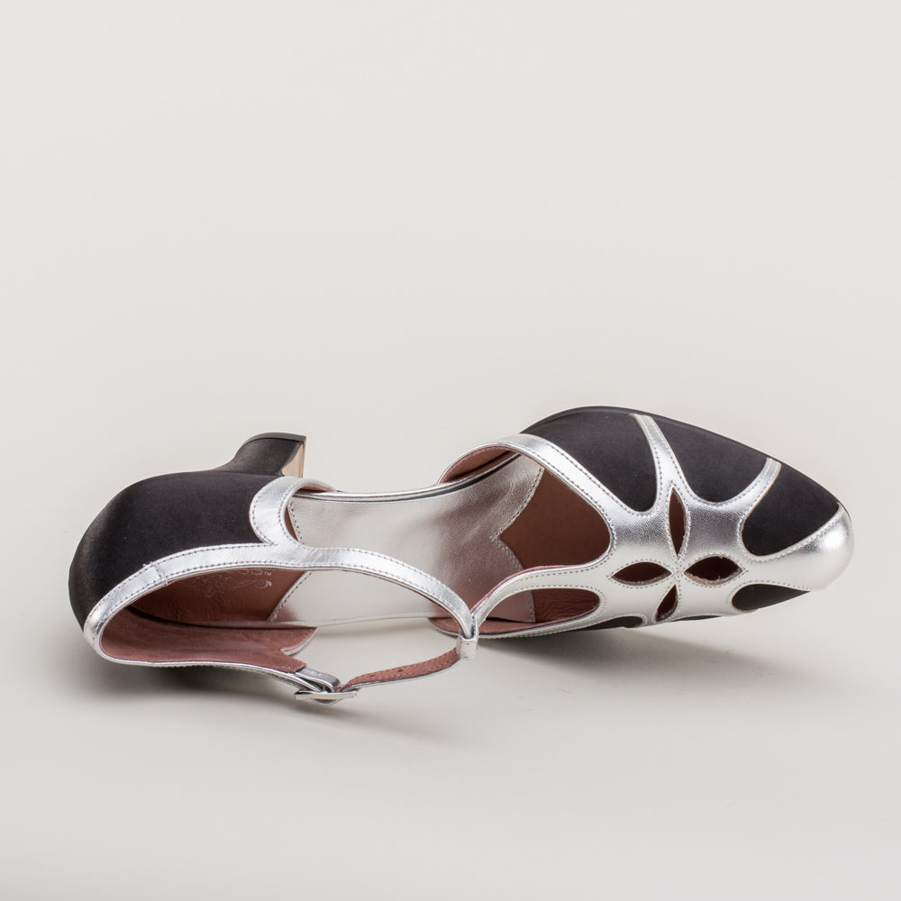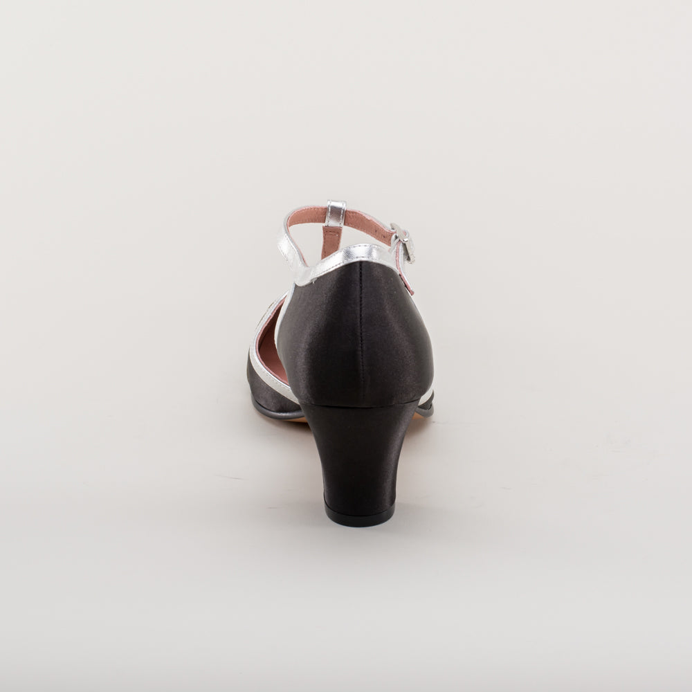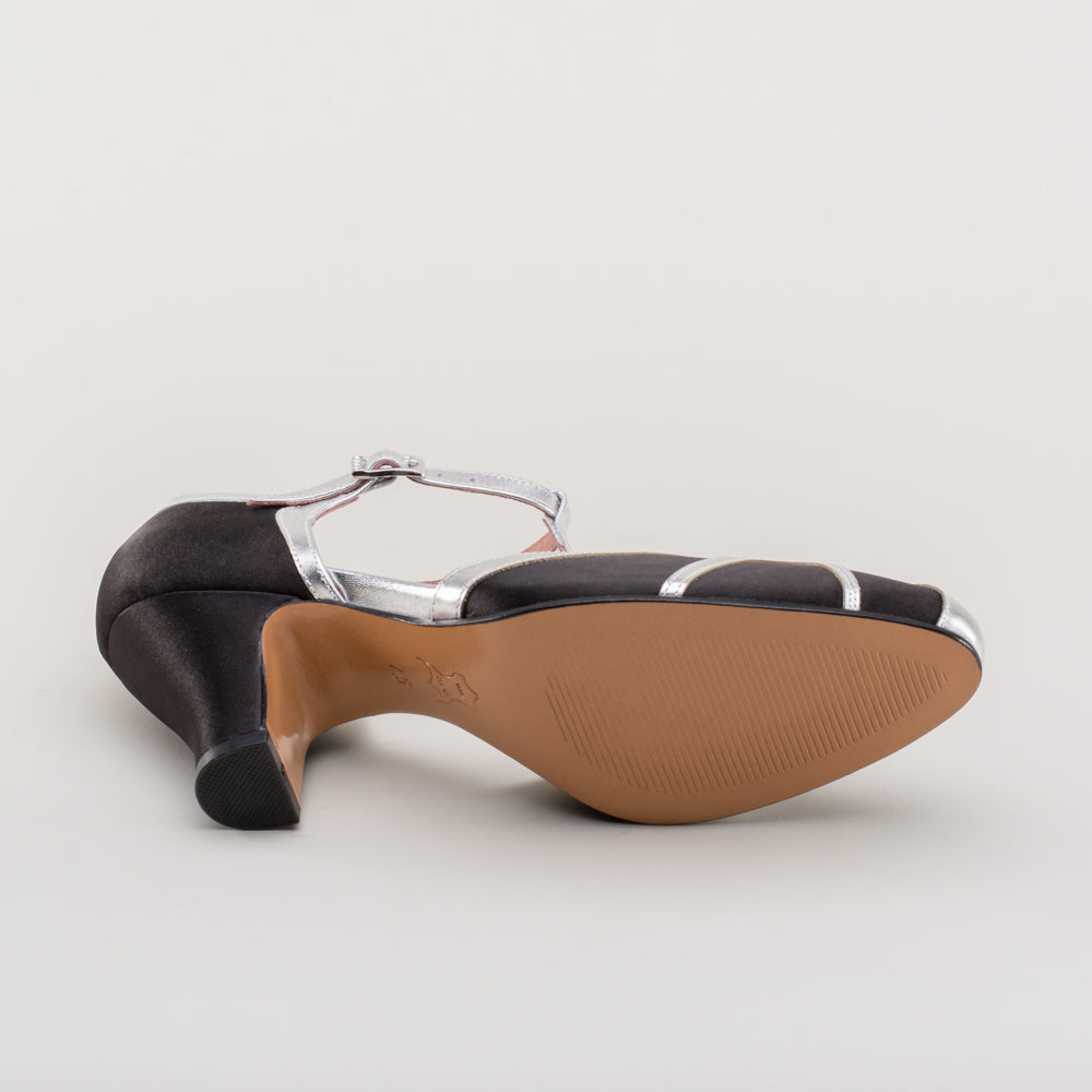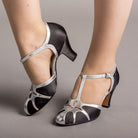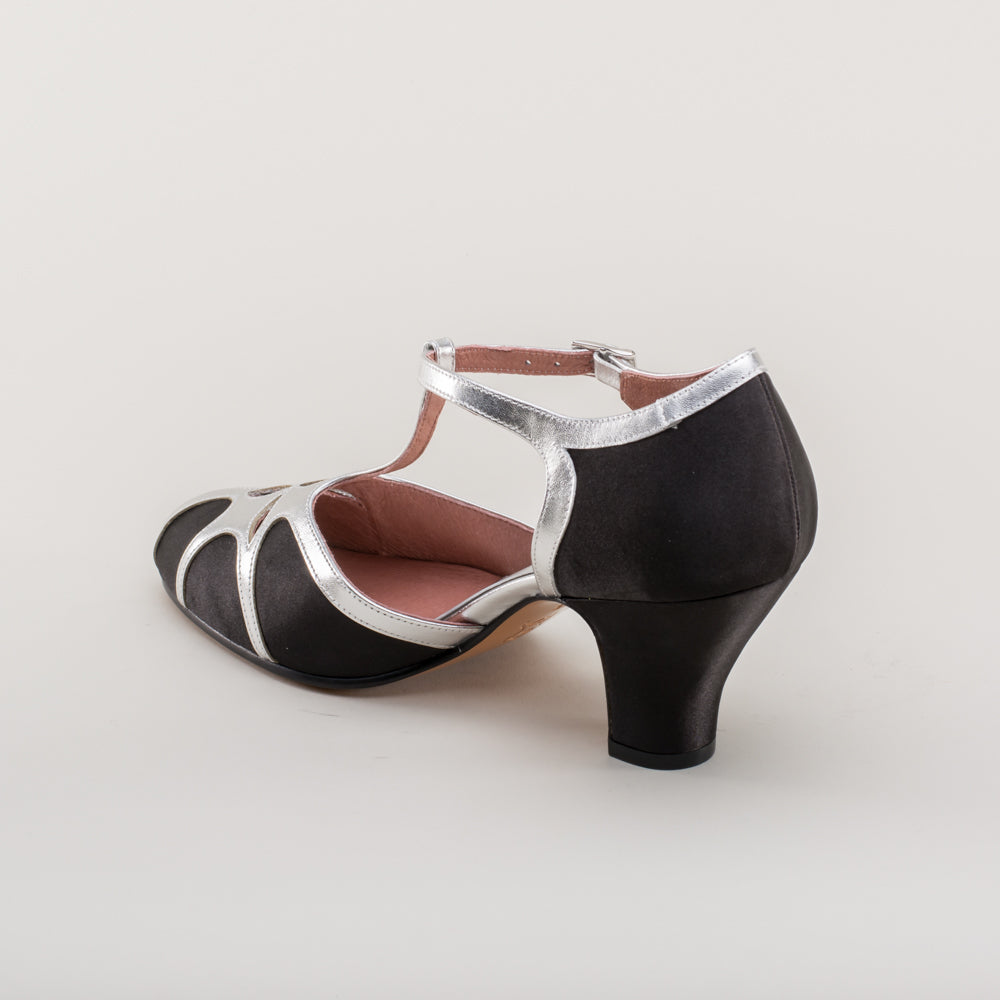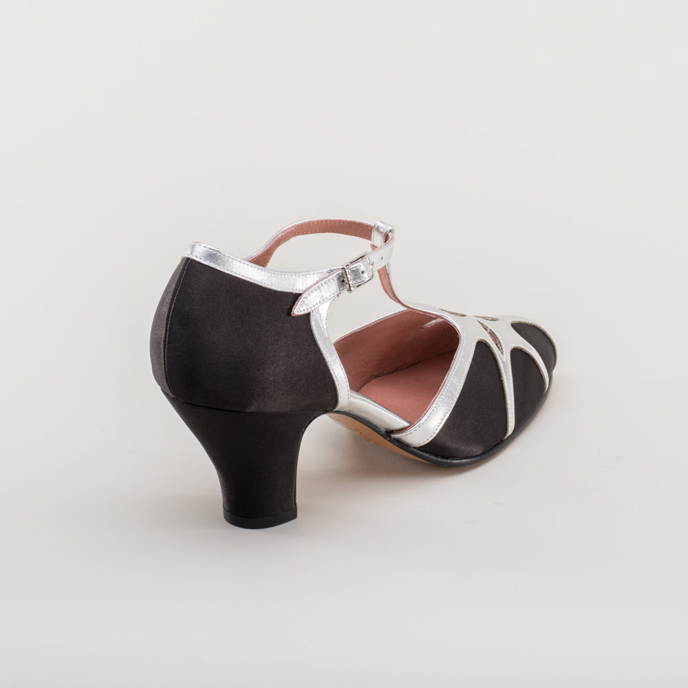 Lilith Vintage Flapper T-Straps Wide (Black/Silver)