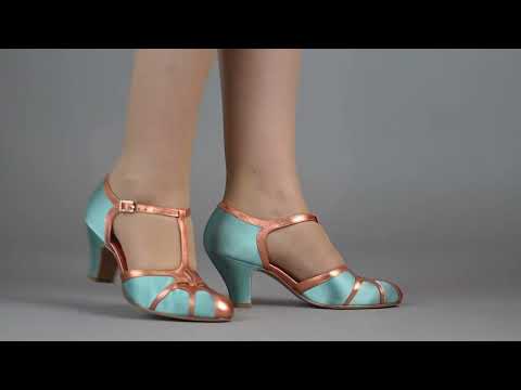 Lilith Vintage Flapper T-Straps Wide (Teal/Copper)