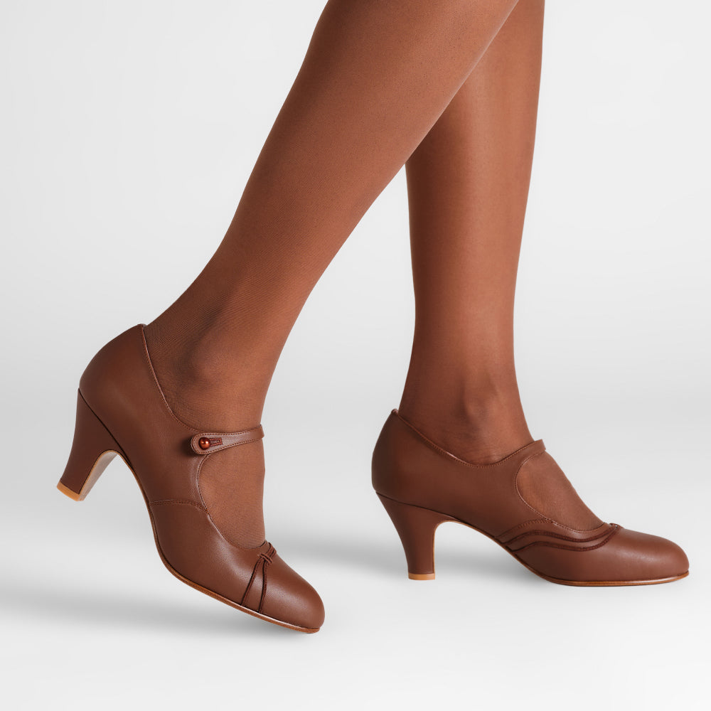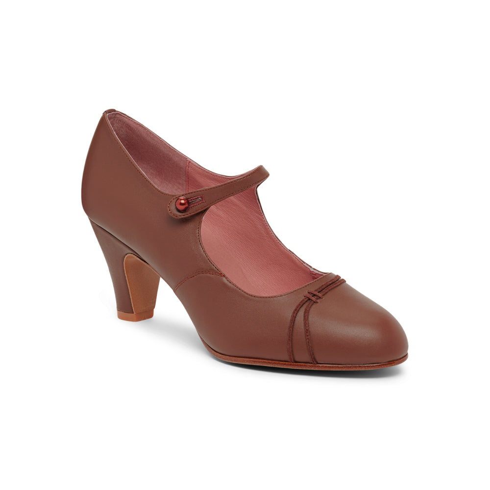 PRE-ORDER Vera 1920s Bar Shoes Wide (Chestnut)